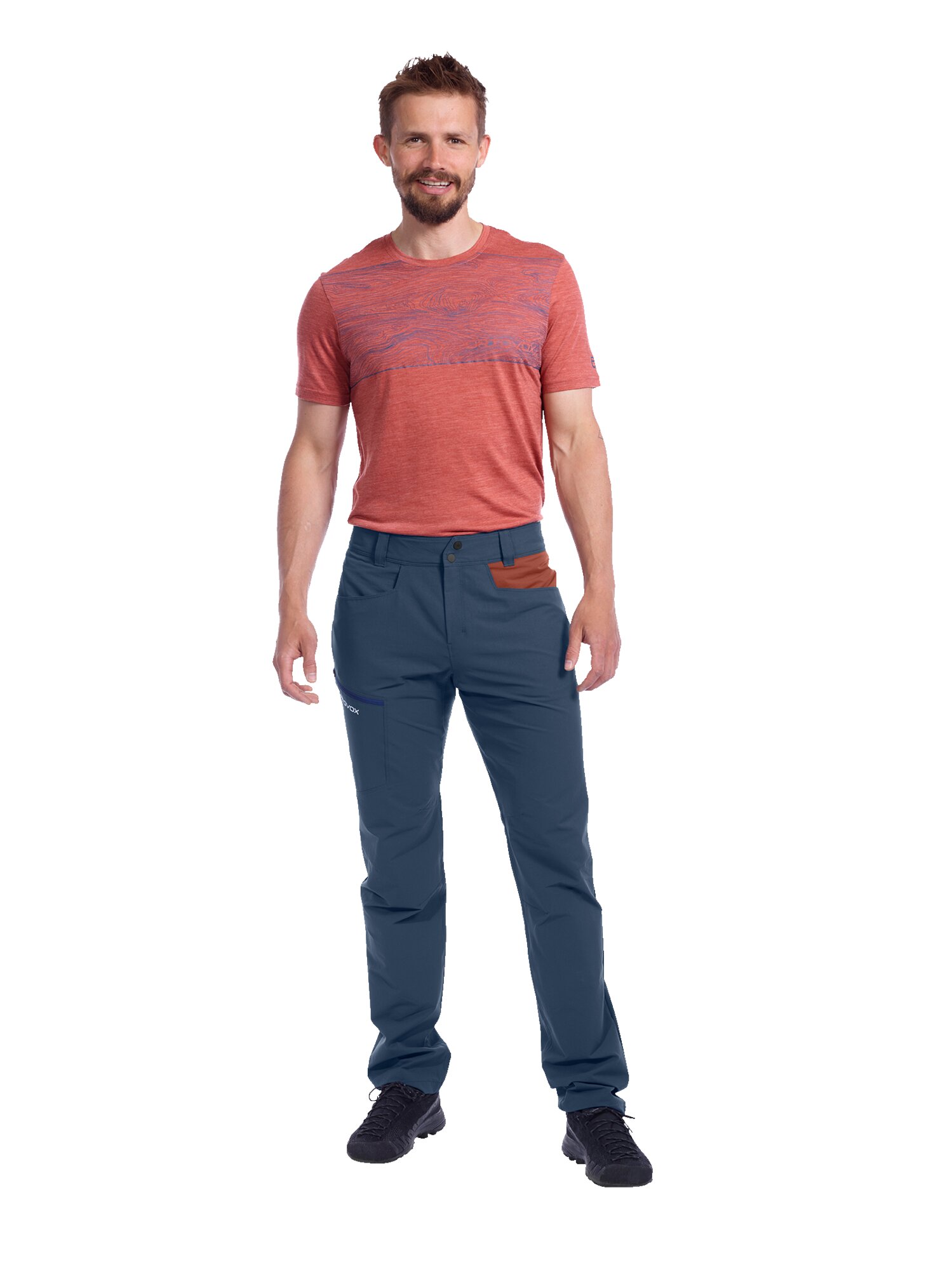 I PELMO PANTS si concentrano sull’essenziale: nelle due tasche e nella pratica tasca per cartina sulla coscia c’è spazio a sufficienza per piccole cose importanti come il cellulare o la cartina. I morbidi inserti in mesh Merino in vita e all’interno delle tasche assicurano il massimo comfort nei punti giusti.