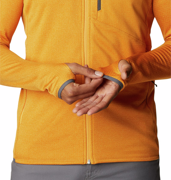 La silhouette con cerniera presenta una protezione per il mento e maniche lunghe arricchite da asole per il pollice per una protezione extra.