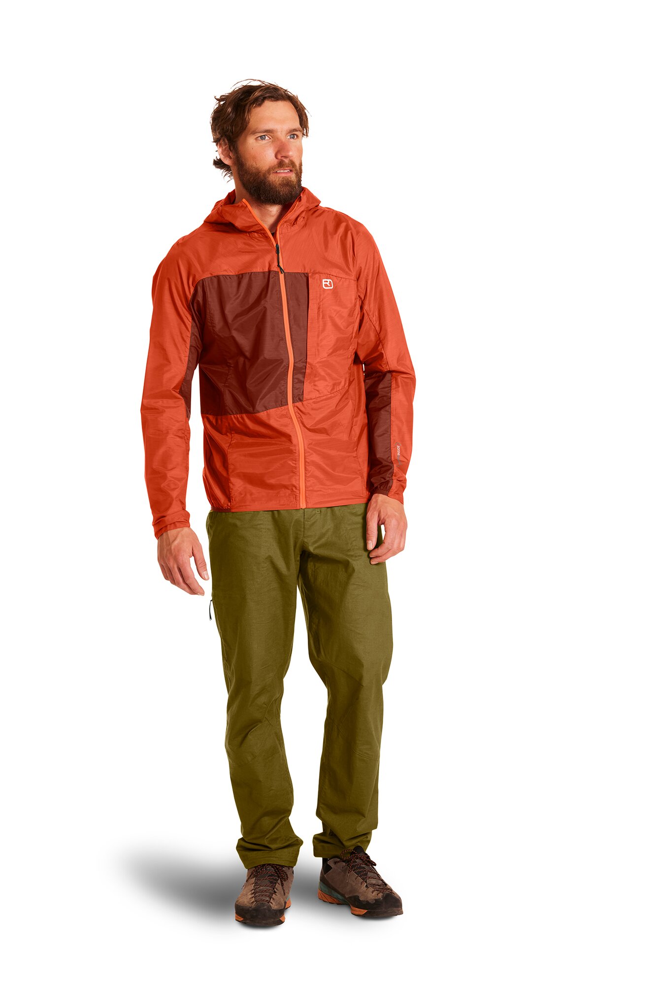 Dato che un vero minimalista vuole risparmiare sul peso ma non sulla funzionalità, il cappuccio, i polsini e l’orlo elasticizzati sono preregolati. È possibile ripiegare completamente la giacca nella comoda tasca sul petto con passante extra e fissarla direttamente allo zaino, all’imbracatura o al passante per la cintura.